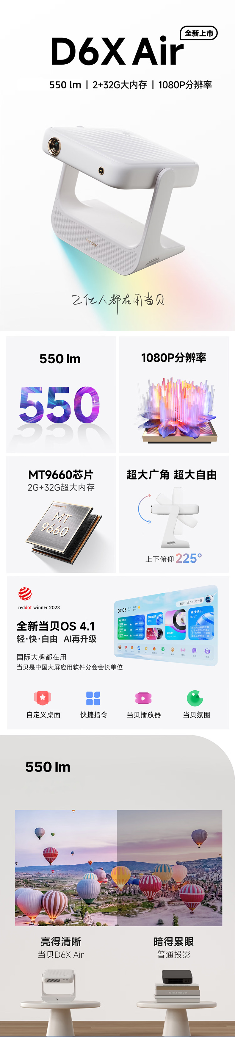当贝 D6Xair激光投影仪云台轻薄商用投影仪