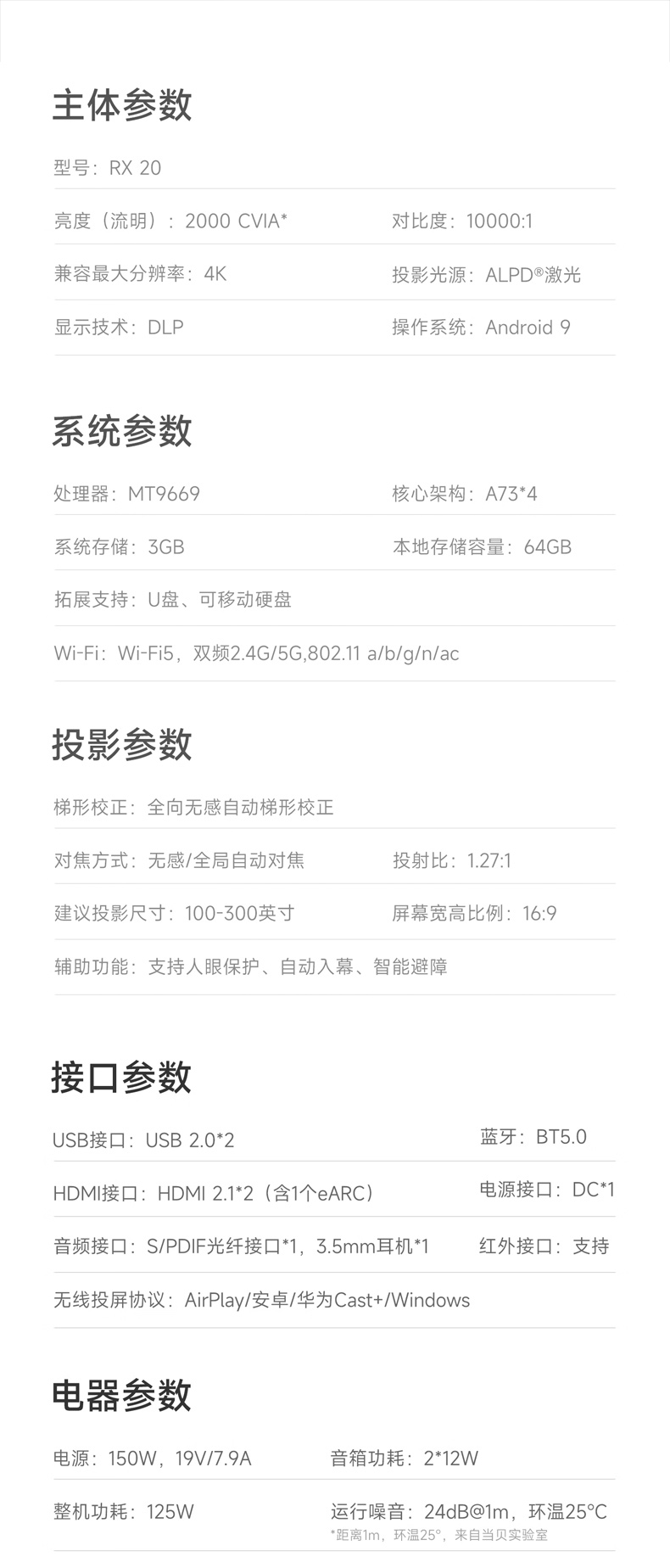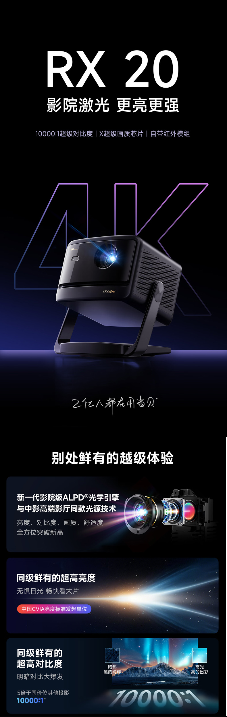 当贝RX 20 灵动云台激光投影仪家用酒店智能红外投影仪